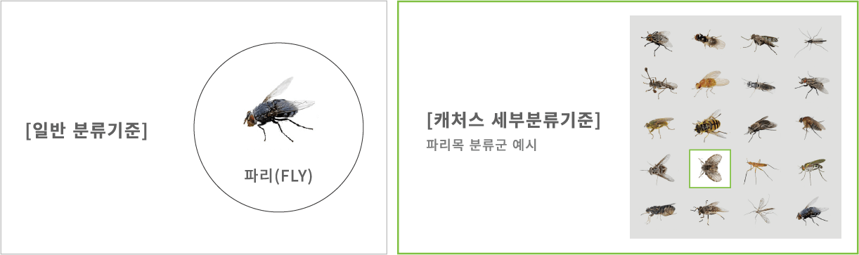 <타사 / 캐처스 곤충 세부동정 비교예시>