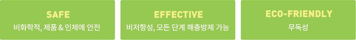 해충의 성충 뿐만 아니라 알과 서식지까지 사멸시켜 식품 유해요소를 효과적으로 제거할 수 있으며,