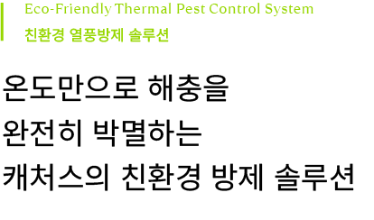 해충 및 생명체들은 극한의 온도에서 생존하지 못합니다. 캐처스는 이 생존한계를 이용해 약제 없이 각종 해충과 유해균을 박멸합니다
