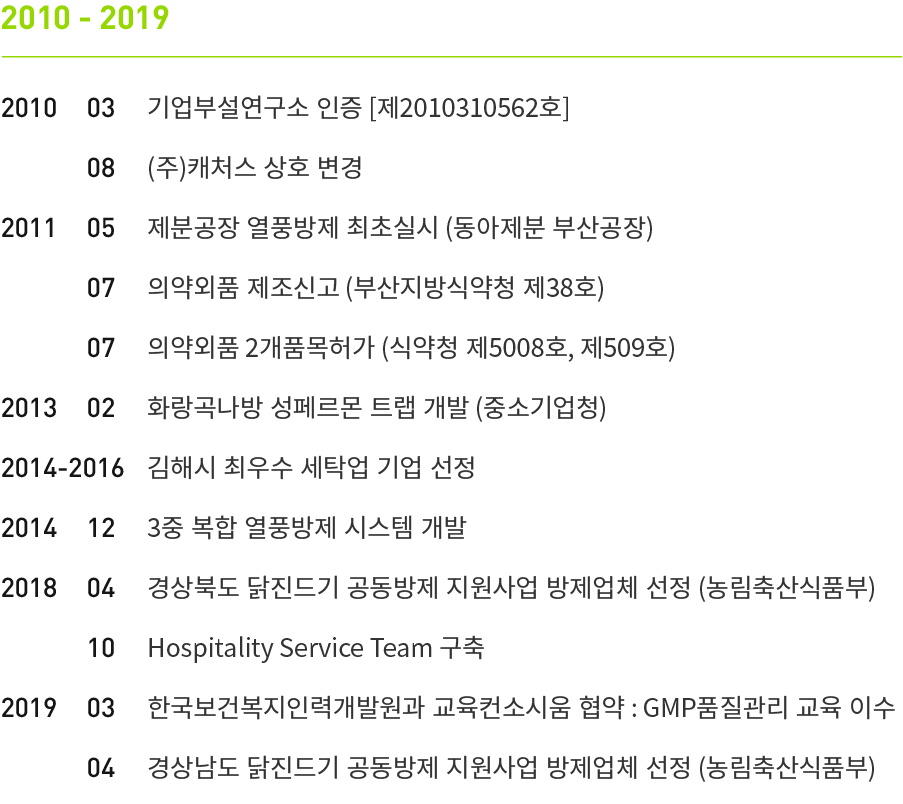언제나 안전한 환경을 위해 발전하는 캐처스의 발걸음입니다